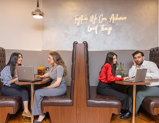 الوصول إلى قاعات اجتماعات مجهزة بالكامل ومساحات عمل مشتركة عند الطلب.